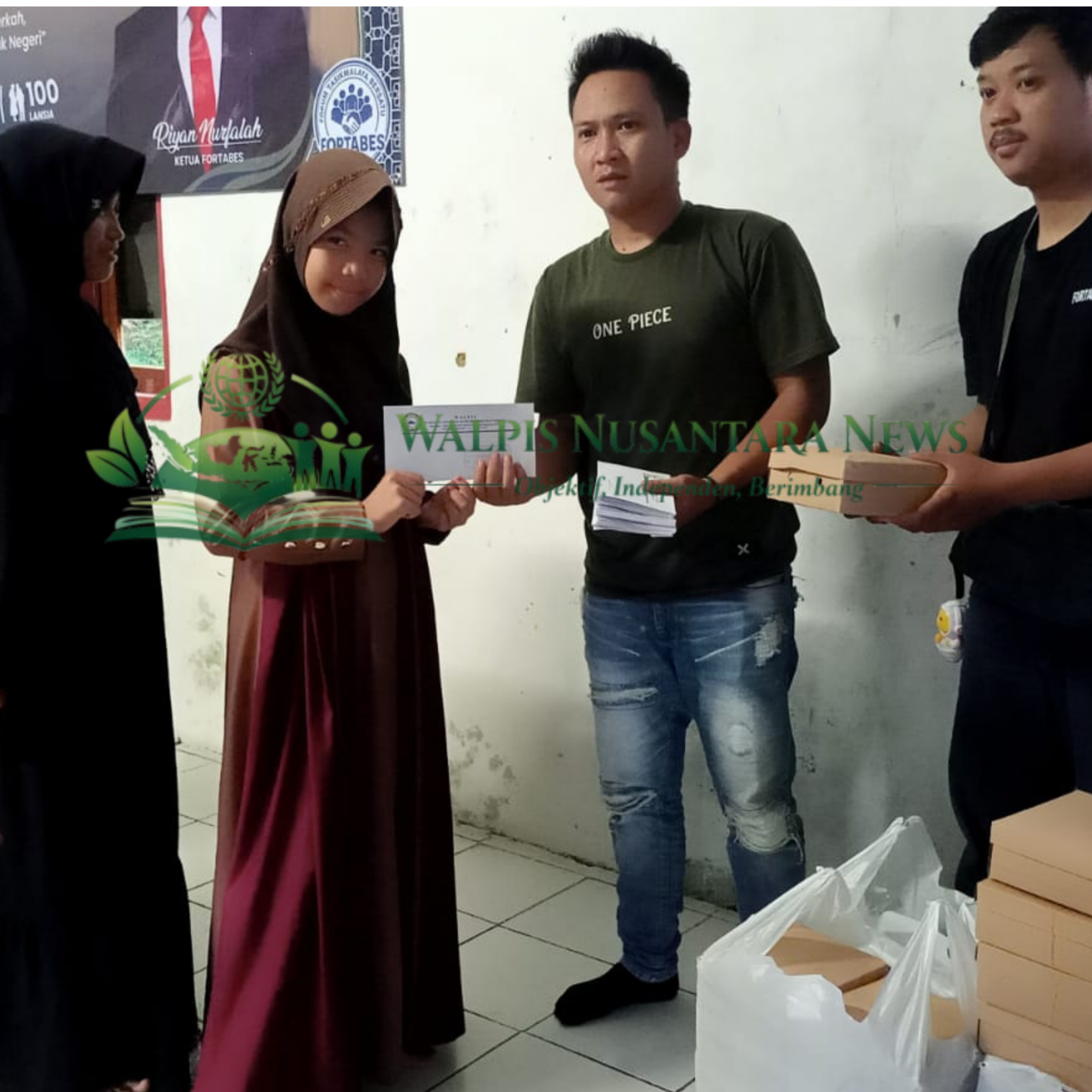 Ketua FORTABES, Riyan Nurfalah, terlihat langsung turun tangan menyerahkan santunan kepada anak-anak yatim. Dengan penuh kehangatan, ia menyapa satu per satu anak yang hadir, memberikan santunan serta paket bantuan yang disambut senyum bahagia.