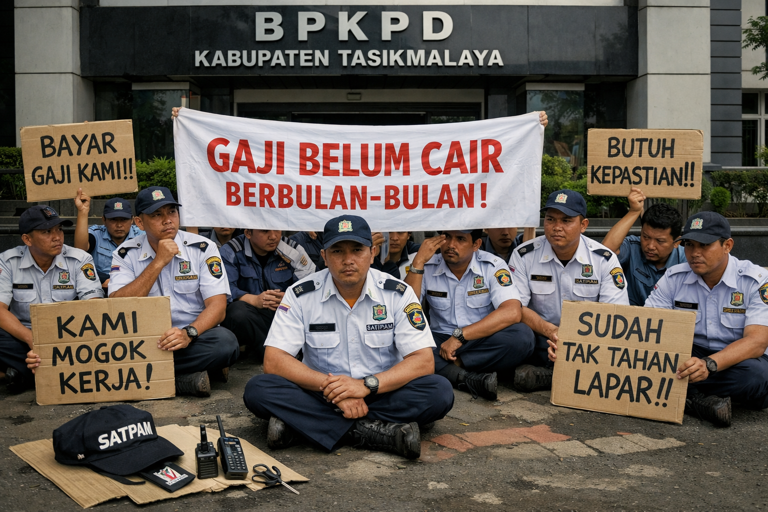 Kabupaten Tasikmalaya, Walpisnusantaranews.com – Ironi kembali terjadi di lingkup pemerintahan daerah. Sejumlah petugas satuan pengamanan (satpam) di lingkungan BPKPD Kabupaten Tasikmalaya memilih mogok kerja setelah gaji mereka dilaporkan tak kunjung cair selama berbulan-bulan. Para penjaga kantor dan aset keuangan daerah itu justru harus berjuang menuntut hak dasar mereka sendiri. Jum’at ( 13/02/2026 )