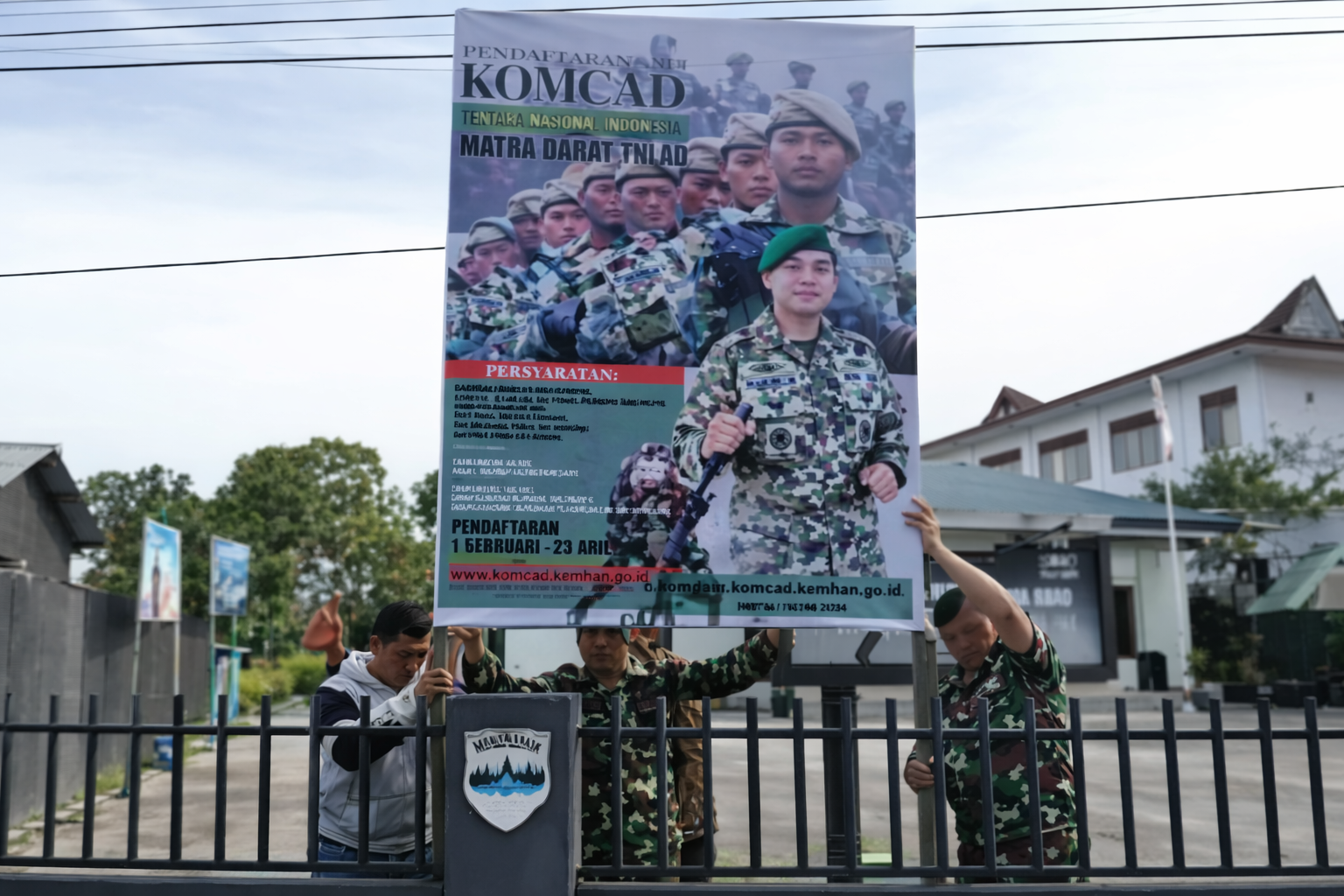Kabupaten Dairi, Walpisnusantaranews.com – Bukan hanya sebagai Spanduk promosi di pasang Tapi adalah Sosialisasi Terbuka didepan mata warga Kabupaten Dairi yang dibuka kesempatan untuk didik menjadi Komponen Cadangan ( Komcad) Matra Darat tahun Anggaran 2026 ini,Baliho tersebut dipasang di Depan Markas Koramil 02 / Sidikalang , Kabupaten Dairi, Kamis ( 05/03 /2026 ).