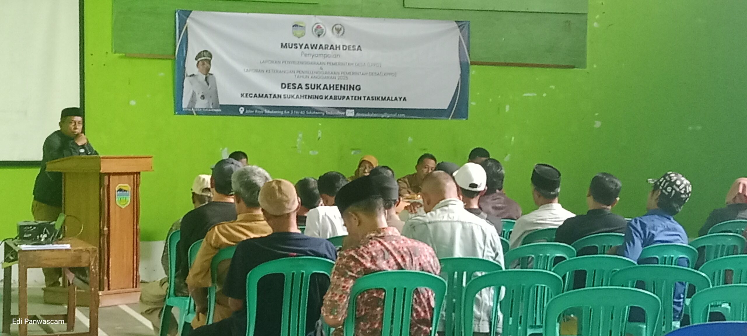 Kabupaten Tasikmalaya, walpisnusantaranews.com — Pemerintah Desa Sukahening, Kecamatan Sukahening, menggelar Musyawarah Desa (Musdes) dalam rangka penyampaian Laporan Penyelenggaraan Pemerintahan Desa (LPPD) dan Laporan Keterangan Penyelenggaraan Pemerintahan Desa (LKPPD) Tahun Anggaran 2025.