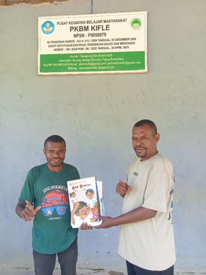 Penyerahan bantuan berlangsung di Sekretariat PKBM Distrik Saifi, Kampung Sira, dalam pertemuan yang dihadiri langsung oleh Ketua Rumah Baca Kampung Kwowok, Marten Sreklefat. Kegiatan tersebut juga diisi dengan diskusi terkait pengembangan literasi masyarakat di wilayah setempat.